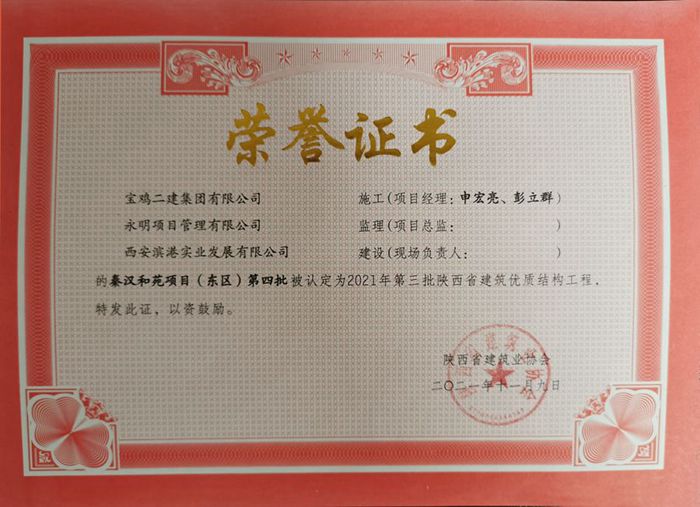 2021年度陜西省建筑優(yōu)質(zhì)結構工程(秦漢和苑項目(東區(qū))第四批)