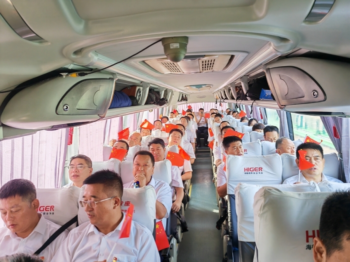 路途遙遠,正如漫漫長征路,在前往目的地的途中,嘹亮的紅色歌聲充滿了整個車廂,全體人員通過黨史知識問答、紅色詩詞朗誦等互動活動,一同重溫黨史,向黨送祝福、感恩新時代。