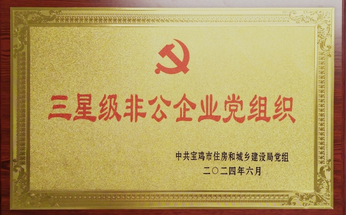同時,集團(tuán)公司黨委被寶雞市住房和城鄉(xiāng)建設(shè)局黨組命名為“三星級”黨組織。