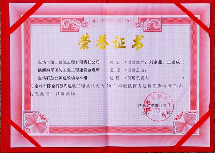 2010年省級優(yōu)質結構工程(石鼓閣)